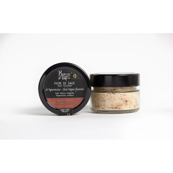 - 9 vasetti di Fior di Sale Aromatizzato (naturale, limone, arancia, 4 pepi, rosmarino, peperoncino, timo, olive nere, origano)