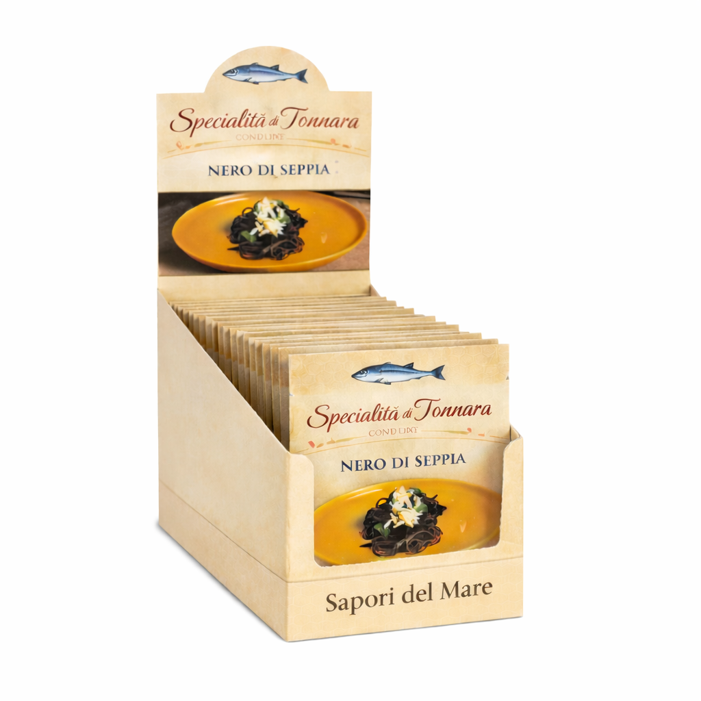 Il Nero di Seppia in busta – Specialità di Tonnara è la soluzione pratica e professionale per portare in cucina tutto il sapore autentico del mare.